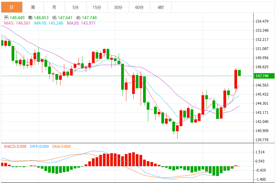 周二(5月13日),美元/日元上涨147.768,暂报147.737,跌幅0.47%。