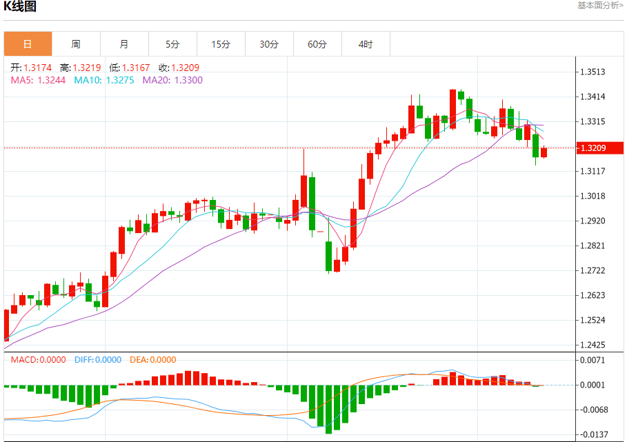 汇价高见1.3220,低见1.3165。上一交易日,汇价收于1.3174。