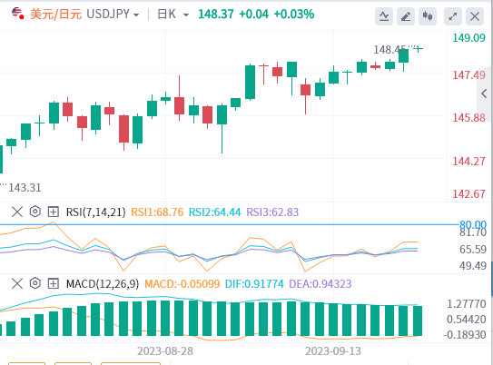 有下跌,但立即支撑在148点,考虑到美元指数的上涨及其与美元兑日元的正方向相关性,如果持有,可能会反弹至149点。