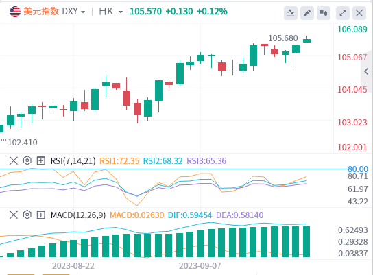已恢复向上移动,目标为106,支撑位保持在104.50。