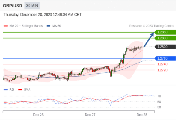 在 1.2760 之上,看涨,目标价位为 1.2830 ,然后为 1.2850 。