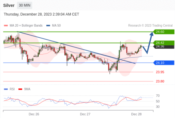 在 24.10 之上,看涨,目标价位为 24.42 ,然后为 24.60 。