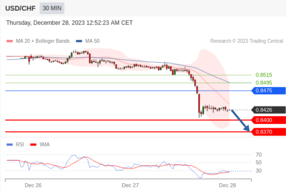 在 0.8475 之下,看跌,目标价位为 0.8400 ,然后为 0.8370 。