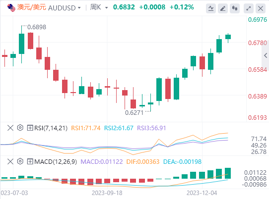 一直远高于0.68,如果继续上涨,未来几个交易日可能会测试0.69。