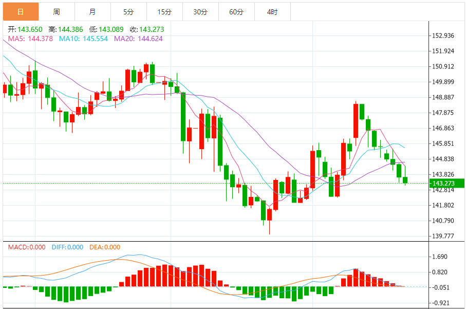 支撑位:143.12 143.19 143.25