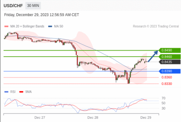 在 0.8390 之上,看涨,目标价位为 0.8460 ,然后为 0.8490 。