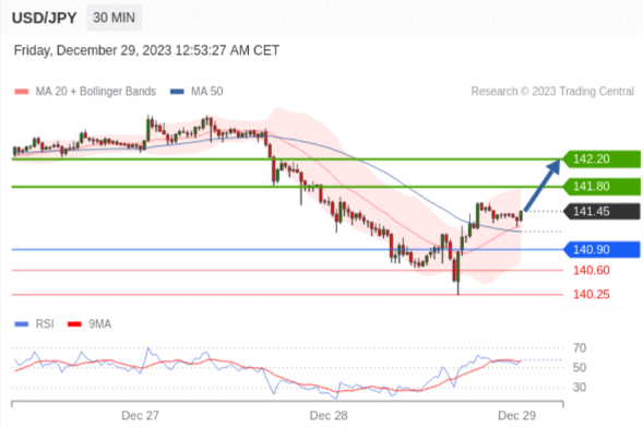 在 140.90 之上,看涨,目标价位为 141.80 ,然后为 142.20 。