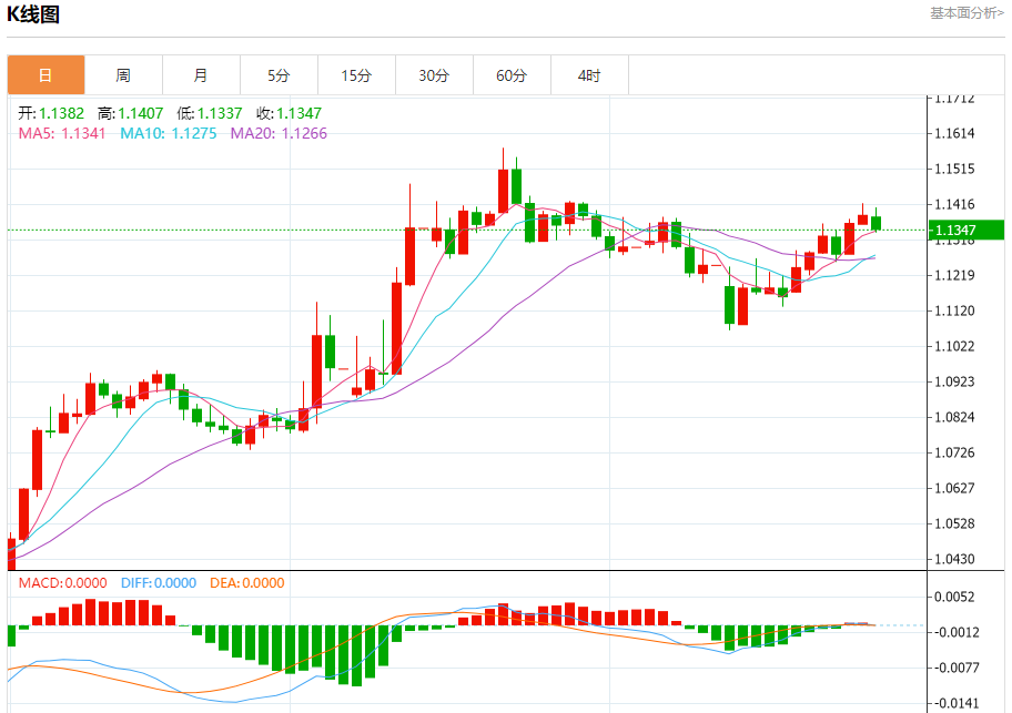 汇价高见1.1407,低见1.1337。上一交易日,汇价收于1.1386。