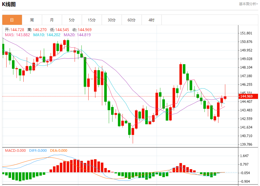汇价高见146.270,低见144.545。上一交易日,汇价收于144.778。