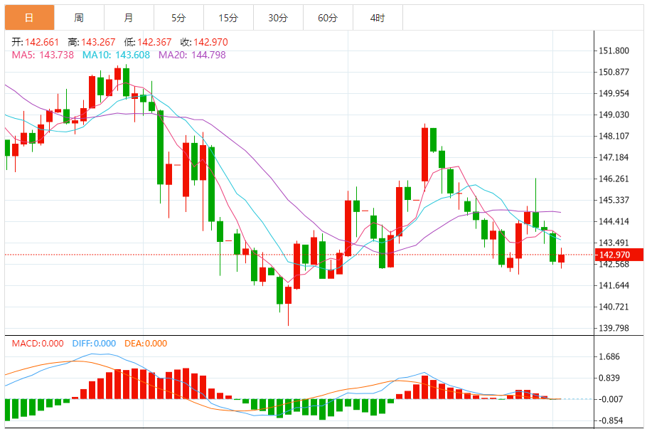 周二(6月3日),美元/日元上涨143.000,暂报142.990,涨幅0.21%。