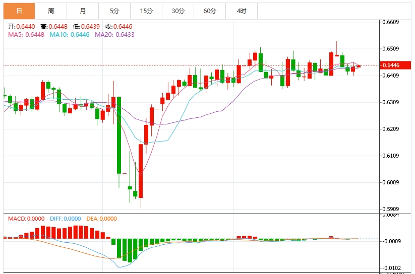 澳元仍位于0.6450关口附近的九日EMA下方