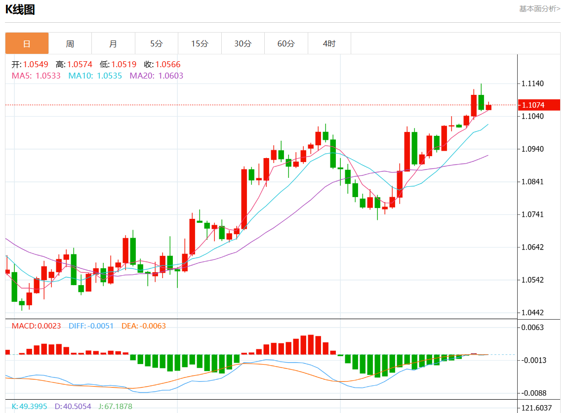 周五欧市盘中,欧元/美元最新报1.1074,日图涨0.14%.