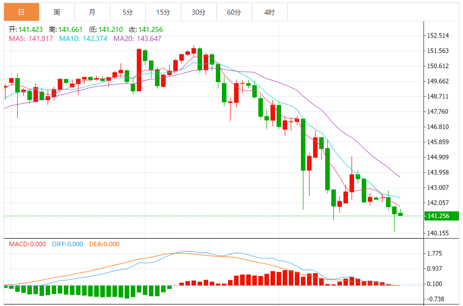 周五(12月29日),美元/日元下跌,暂报141.258,跌幅0.08%。