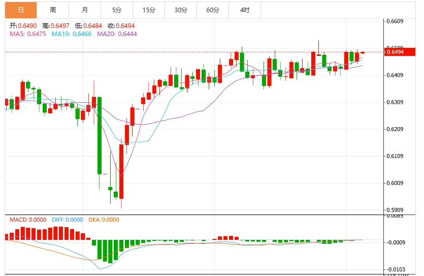 澳大利亚元在挑战0.6500关口,接近七个月高点