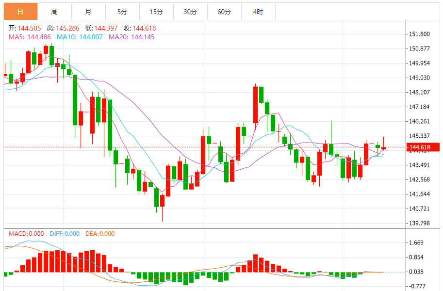 周二(6月10日),美元/日元上涨144.635,暂报144.628,涨幅0.03%。