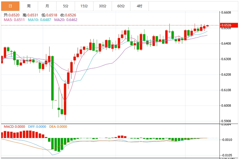 技术分析:澳元测试0.6500支撑位,接近九日