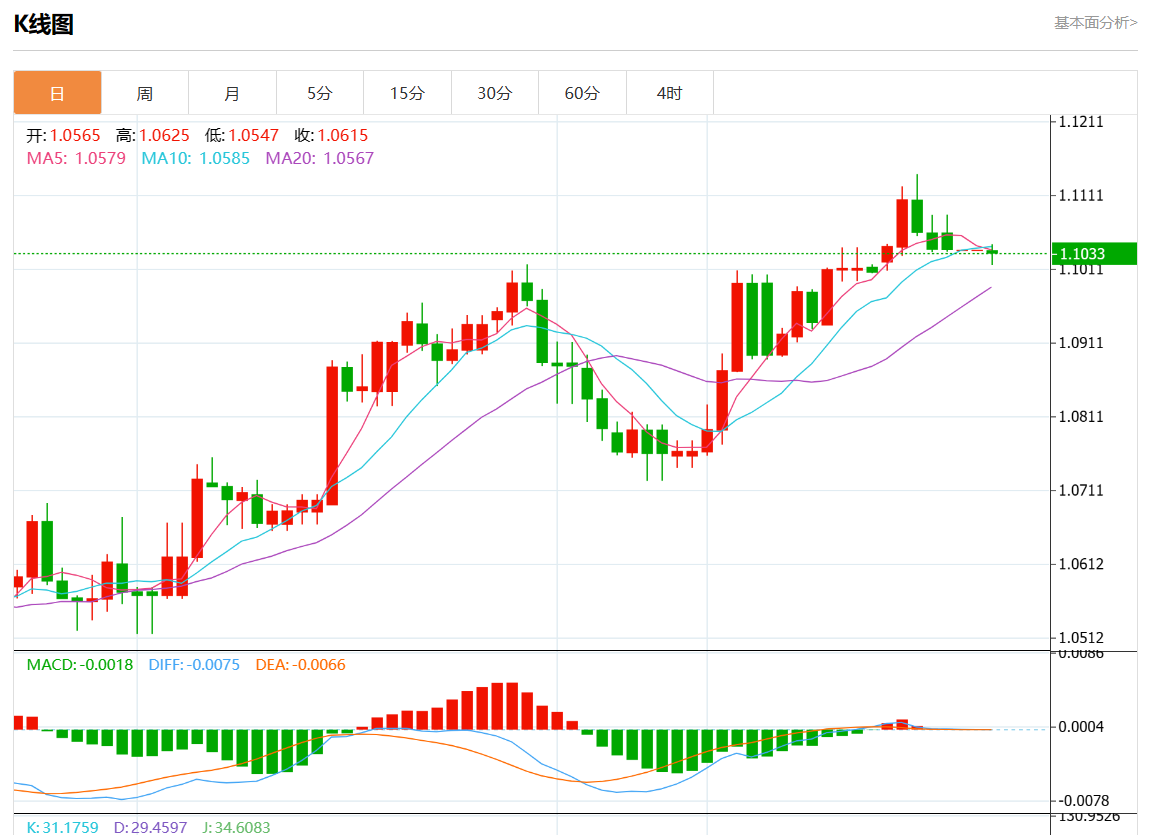 周二欧市盘中,欧元/美元最新报1.1033,日图跌0.03%.