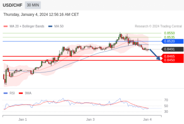 【XM交易平台】2024年1月4日亚盘交易建议:黄金、白银、欧元、英镑、日元、瑞郎交易点位技术分析及预测