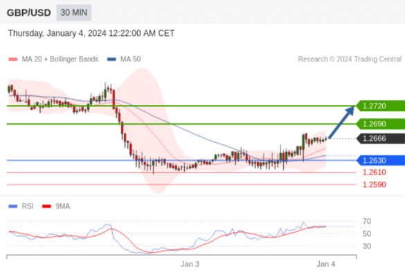 在 1.2630 之上,看涨,目标价位为 1.2690 ,然后为 1.2720 。