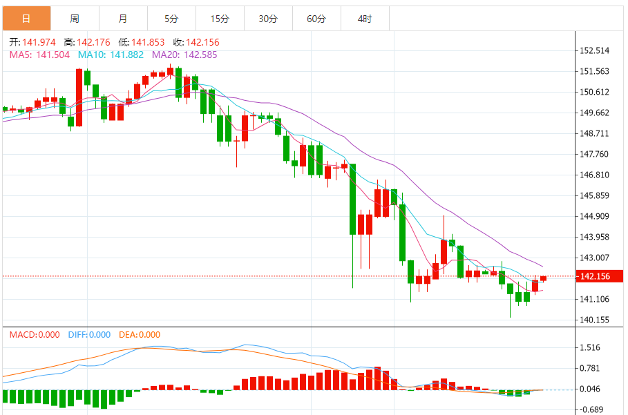 周三(1月3日),美元/日元上涨,暂报142.348,涨幅0.25%。