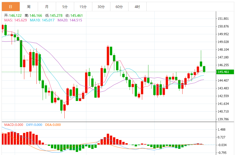 周二(6月24日),美元/日元下跌145.474,暂报145.436,跌幅0.47%。