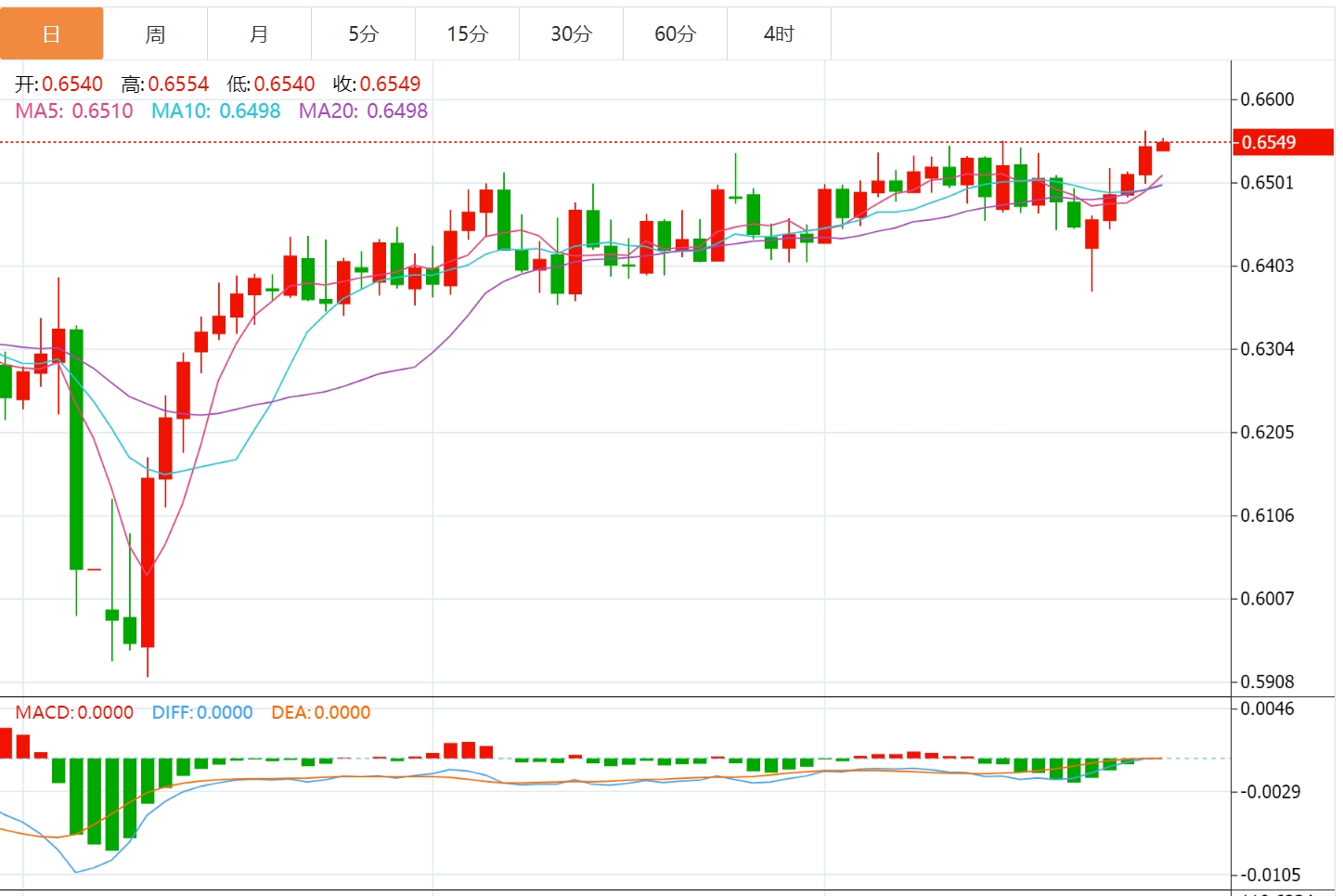 技术分析:澳元在七个月高点附近徘徊,支撑位约为0.6550