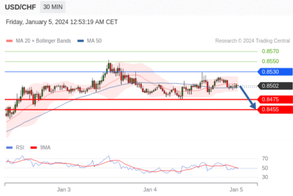 在 0.8530 之下,看跌,目标价位为 0.8475 ,然后为 0.8455 。