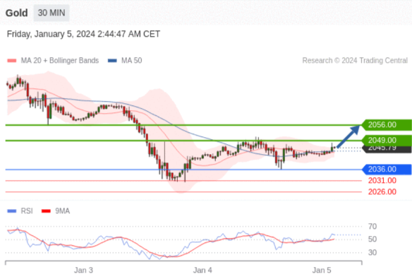 在 2036.00 之上,看涨,目标价位为 2049.00 ,然后为 2056.00 。