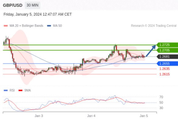 在 1.2655 之上,看涨,目标价位为 1.2705 ,然后为 1.2725 。