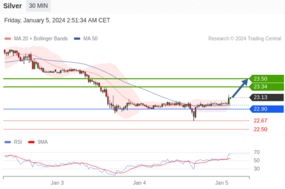 【XM交易平台】2024年1月5日亚盘交易建议:黄金、白银、欧元、英镑、日元、瑞郎交易点位技术分析及预测