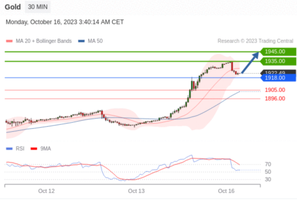 在 1918.00 之上,看涨,目标价位为 1935.00 ,然后为 1945.00 。