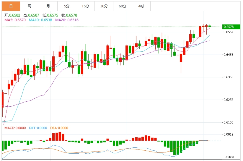 技术分析:澳大利亚元维持在接近0.6600的八个月高位以下