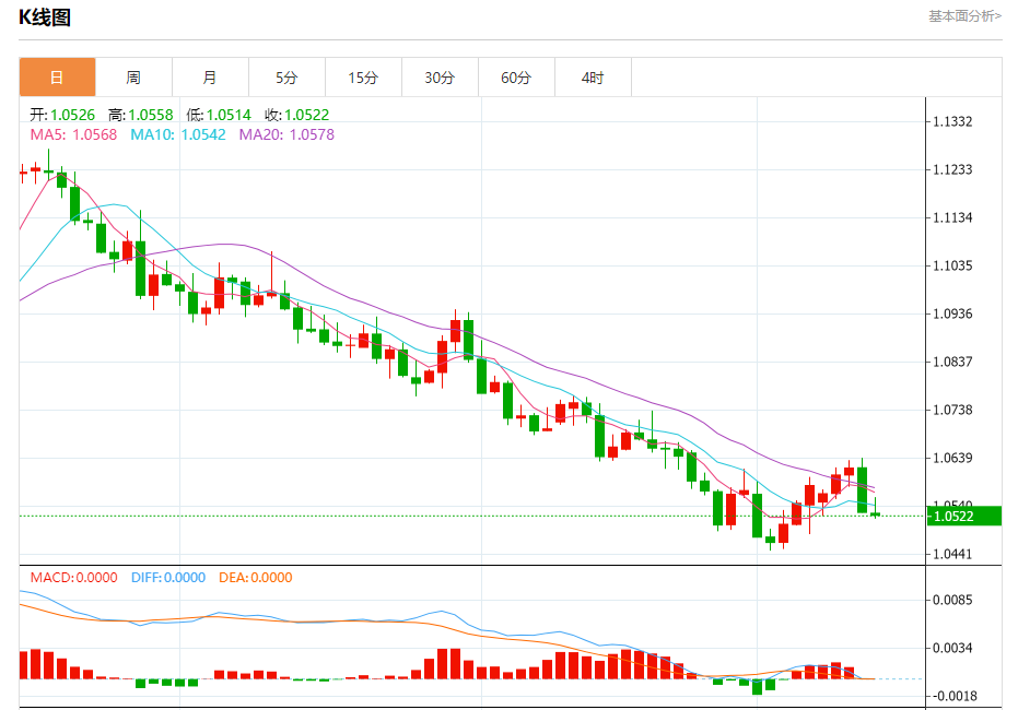 汇价高见1.0558,低见1.0514。上一交易日,汇价收于1.0528。