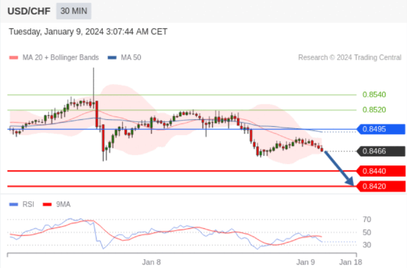 在 0.8495 之下,看跌,目标价位为 0.8440 ,然后为 0.8420 。