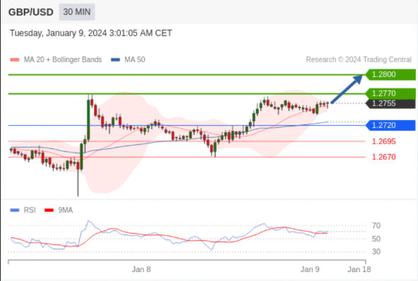 在 1.2720 之上,看涨,目标价位为 1.2770 ,然后为 1.2800 。