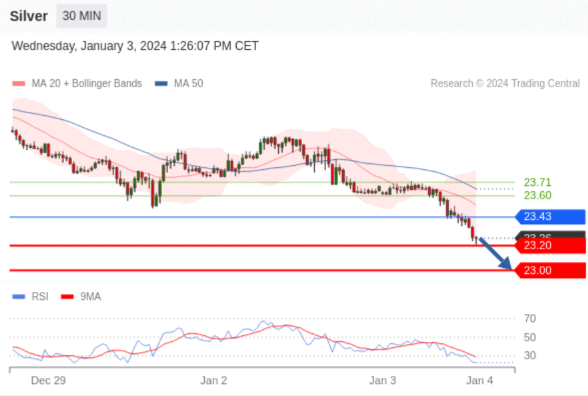 在 23.43 之下,看跌,目标价位为 23.20 ,然后为 23.00 。