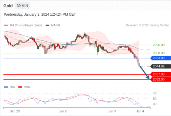 在 2053.00 之下,看跌,目标价位为 2037.00 ,然后为 2032.00 。