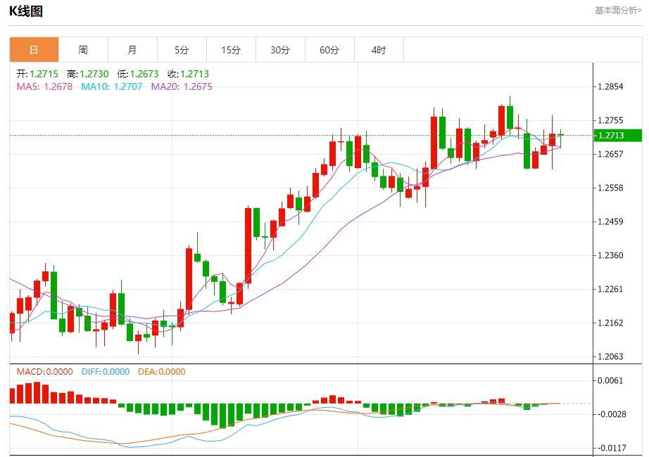 汇价高见1.2730,低见1.2673。上一交易日,汇价收于1.2716。