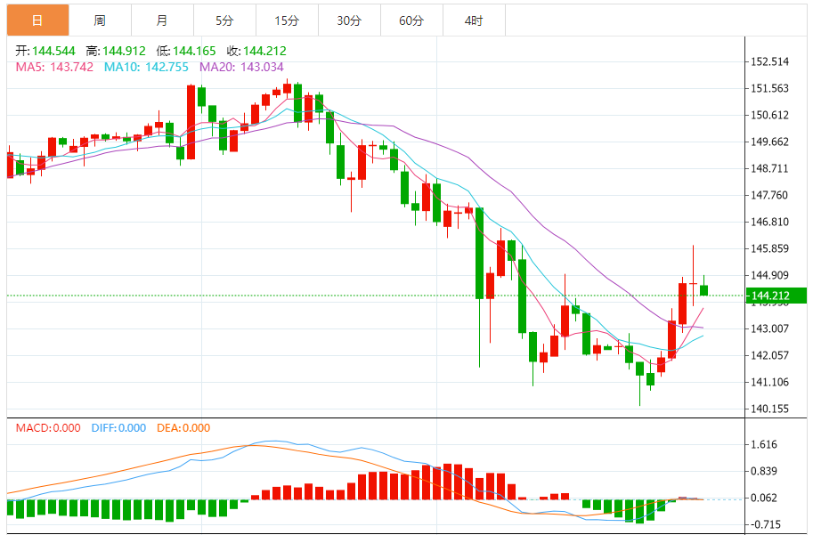 周一(1月8日),美元/日元下跌,暂报144.221,跌幅0.28%。