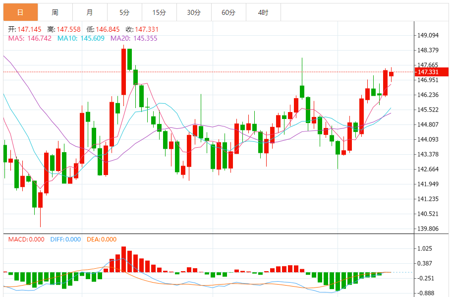 周一(7月14日),美元/日元下跌147.391,暂报147.363,跌幅0.04%。