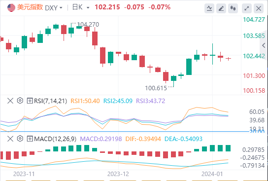 美元指数似乎守在102上方,未来几个交易日可能继续在102-103区间内交易。此后,美元指数突破103或跌破102的机会可能相同。
