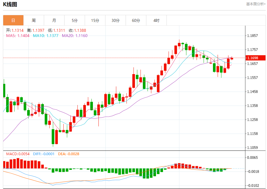 汇价高见1.1709,低见1.1681。上一交易日,汇价收于1.1691。