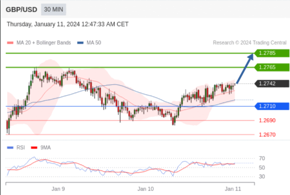 在 1.2710 之上,看涨,目标价位为 1.2765 ,然后为 1.2785 。