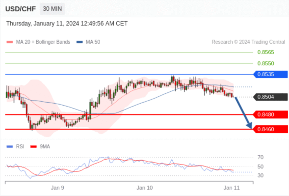 在 0.8535 之下,看跌,目标价位为 0.8480 ,然后为 0.8460 。