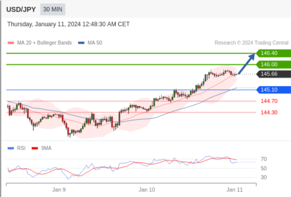在 145.10 之上,看涨,目标价位为 146.00 ,然后为 146.40 。