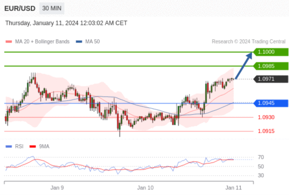 在 1.0945 之上,看涨,目标价位为 1.0985 ,然后为 1.1000 。