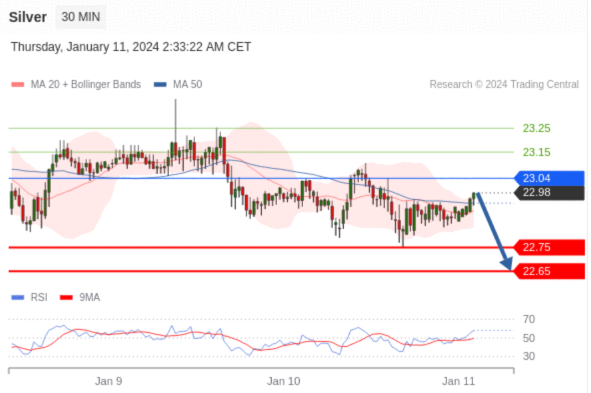在 23.04 之下,看跌,目标价位为 22.75 ,然后为 22.65 。