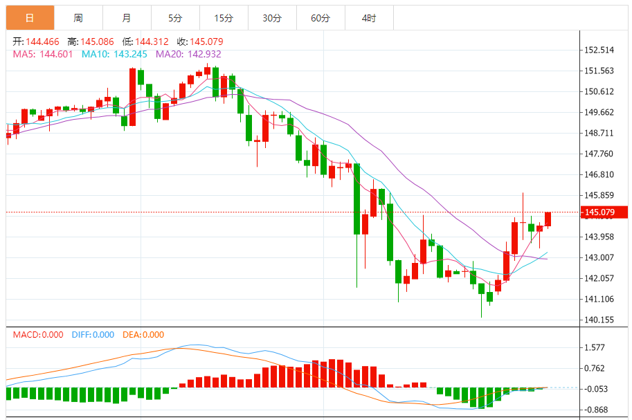 周三(1月10日),美元/日元上涨,暂报145.084,涨幅0.42%。