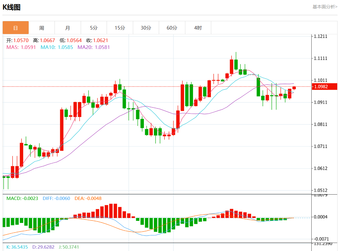 周四欧市盘中,欧元/美元最新报1.0985,日图涨0.12%.