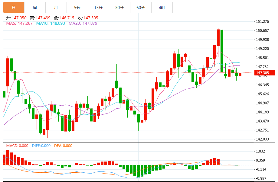 周五(8月8日),美元/日元上涨147.333,暂报147.305,涨幅0.14%。